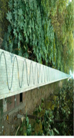 在草坪下埋設(shè)振動傳感光纜時,如果該區(qū)域已經(jīng)鋪上草坪,應(yīng)先將需要鋪設(shè)振動傳感光纜的周界區(qū)域的草坪用草坪切割機(jī)鏟起。周界區(qū)域?qū)挾葢?yīng)不小于1.2米,如須提高警戒級別,可增加周界區(qū)域的寬度。草坪下面的土地應(yīng)是土質(zhì)較為硬而緊密的泥土,如果是水分較多,軟而松散的土質(zhì)會吸收振動,造成設(shè)備性能下降。在土層的表面沿周界方向迂回平行鋪設(shè)多道振動傳感光纜,光纜間隔距離為25cm,即1.2米寬的區(qū)域應(yīng)平行鋪設(shè)5道振動傳感光纜,如圖。振動傳感光纜應(yīng)平直、緊密地附著在土層表面,可采用Φ5的鋼絲折彎成如圖所示的線卡子,每隔50cm用線卡子將振動傳感光纜緊壓在土層上,但應(yīng)注意避免因壓力過大造成光纜變形。固定好光纜后,將草坪平鋪在上面,鋪設(shè)厚度5—10cm為適,鋪設(shè)太深靈敏度太低,不利于報警信息識別。應(yīng)保證草坪接合處緊密,以避免振動傳感光纜外露。